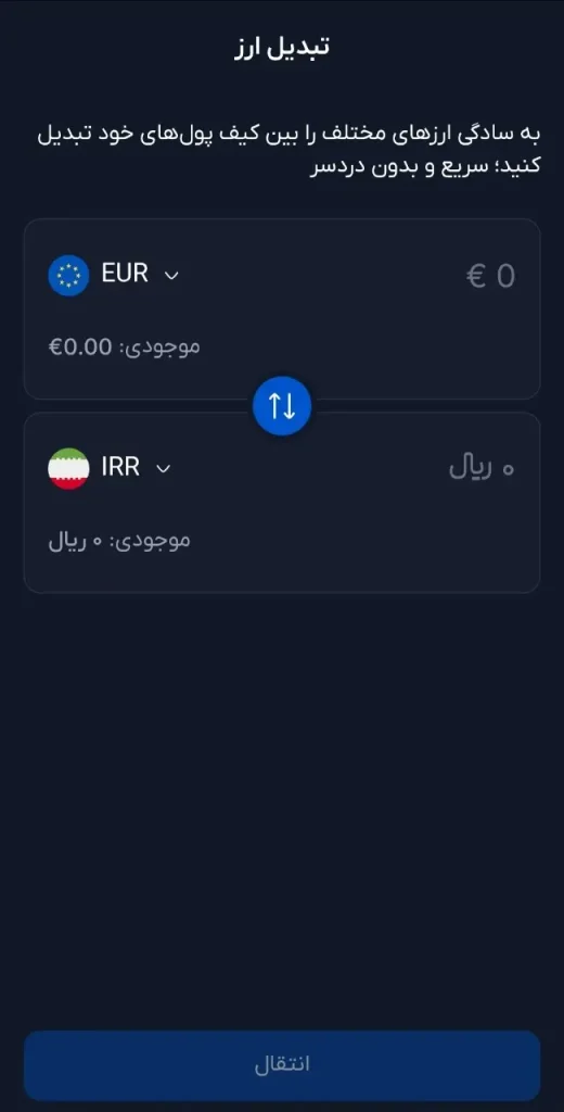 کیف پول تان را شارژ کنین و سپس تبدیل اعتبار انجام بدین