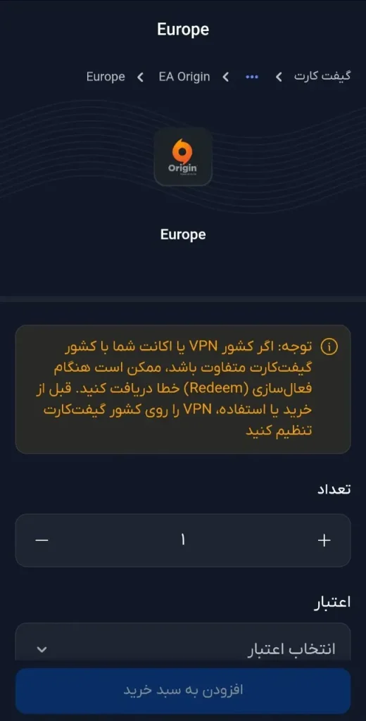 بهترین روش برای کاربران ایرانی → EA Origin / EA Wallet Gift Card