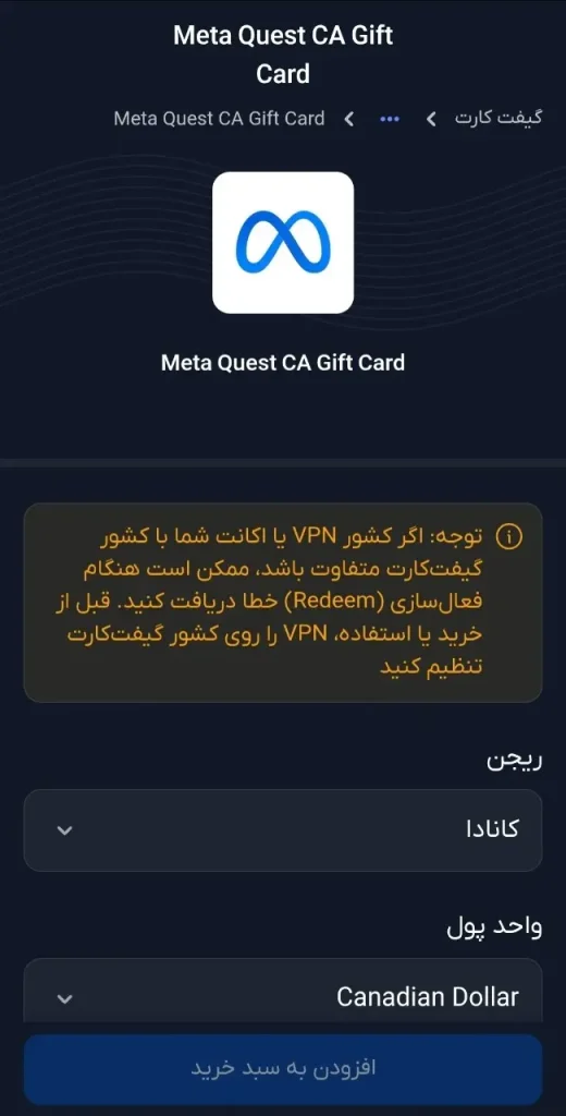 Meta Gift Card معمولاً ریجنلاک دارد و رایجترین نسخهها:
