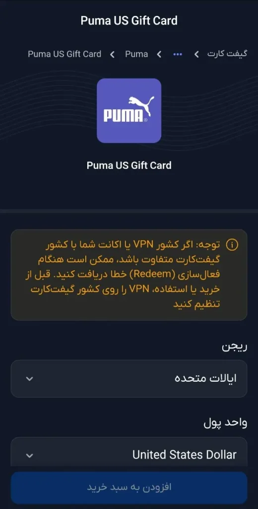 با Puma Gift Card کاربران میتوانند از میان هزاران محصول متنوع و رسمی Puma انتخاب کنند.