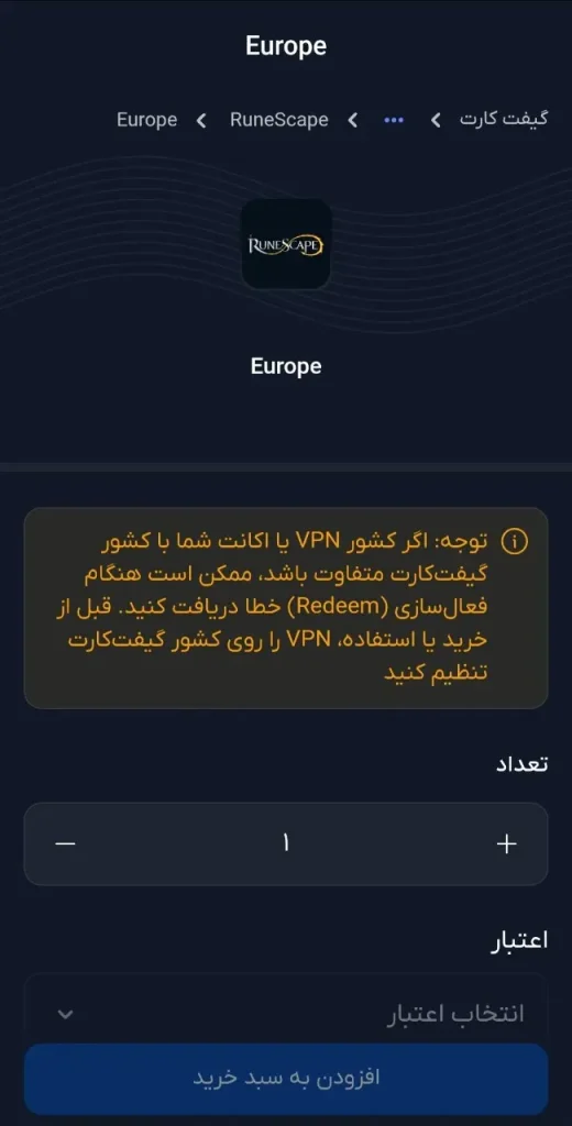 🎮 انواع شارژهای RuneScape که قابل خرید هستند: