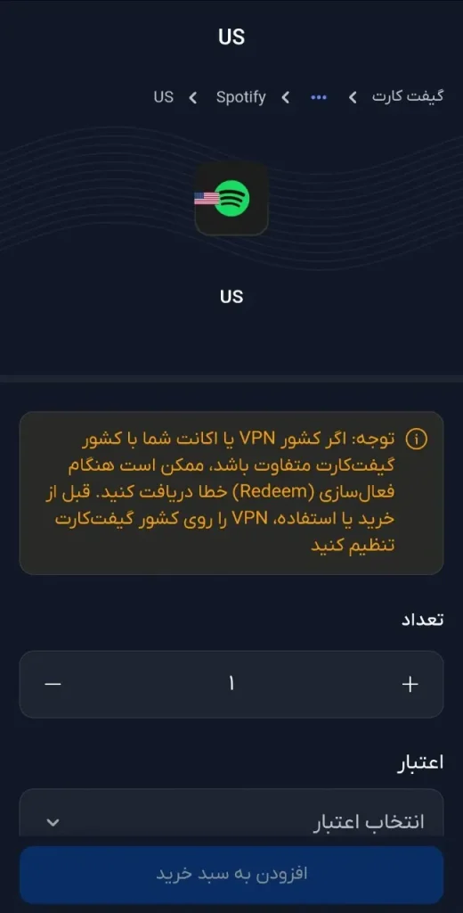 اسپاتیفای در بیش از ۱۷۰ کشور فعال است و اشتراک آن به دلیل محدودیتهای پرداخت بانکی برای کاربران ایرانی، با گیفت کارت یکی از راحتترین روشهاست.